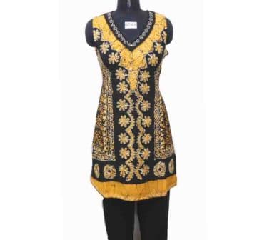 Rayon Batik Knee Length Baby Doll Dress for womens/girls With Trendy Embroidery With Unique Style For Every Occasions .