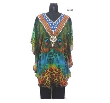 Trendy Printed Poly Georgette women’s kaftan with stone beaded work on neck ,knee lenth Didital Printed Kaftan .