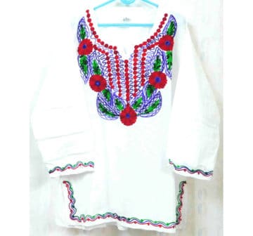 This is Plain White Cotton Top & Blouse With Attractive Multi color Embroidery , Tastefully decorated with stunning embellishments the comfy piece can be ordered to flaunt the style statement at both casual and formal occasions.