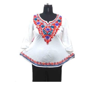The best quality Ladies White Top with stylish Trendy Beautiful Coloured embroidery top. A huge collection of designer tops and the offered piece is gaining wide popularity for its unique pattern and mute colors that surely add ethnic vibe to the wardrobe of Indian women. Tastefully decorated with stunning embellishments the comfy piece can be ordered to flaunt the style statement at both casual and formal occasions.